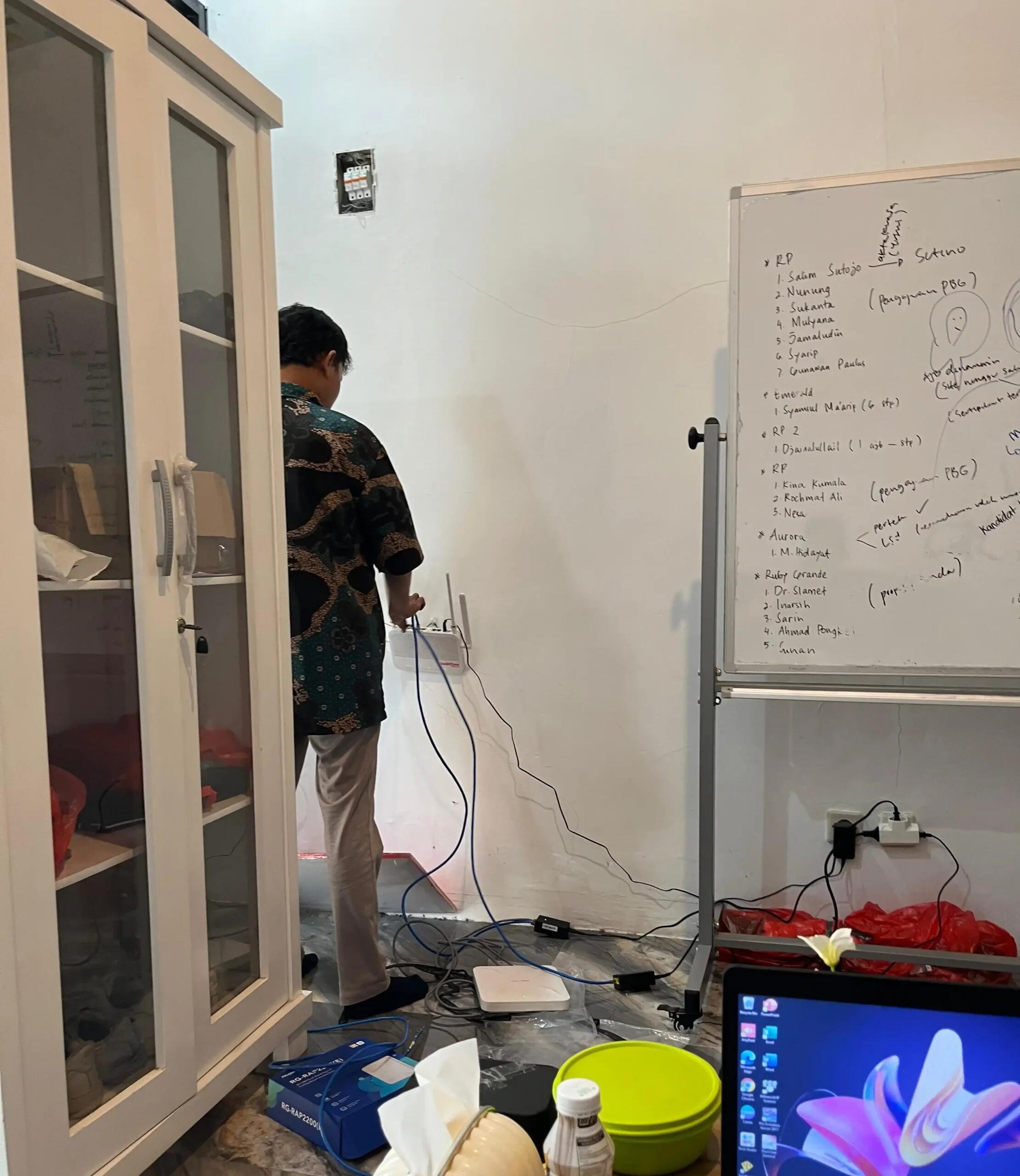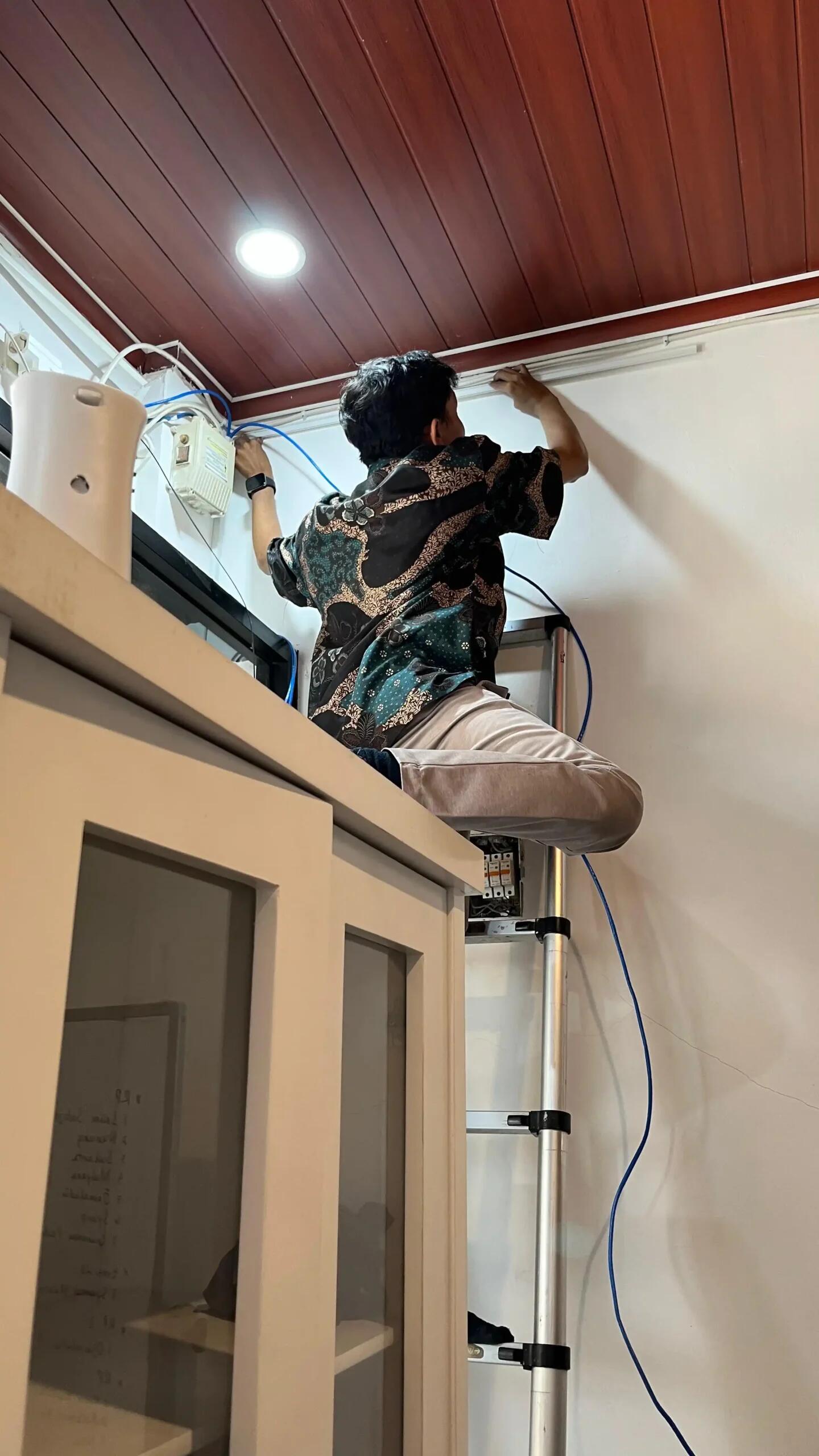 Kami mulai kerja sesuai rencana. Kabel rapi, Wi-Fi kuat, sistem aman. Semua dikerjakan dengan standar profesional dan update real-time ke klien.